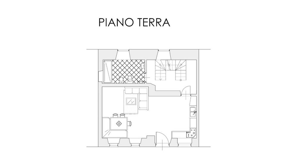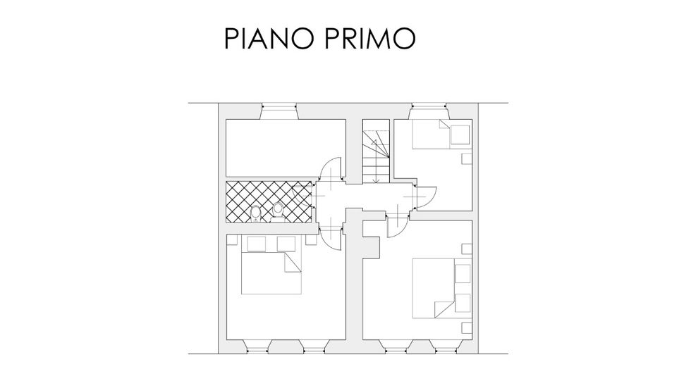 L’immobile necessita di un intervento di ristrutturazione globale, è possibile creare un appartamento composto da cucina soggiorno, un ripostiglio, due bagni e tre camere.