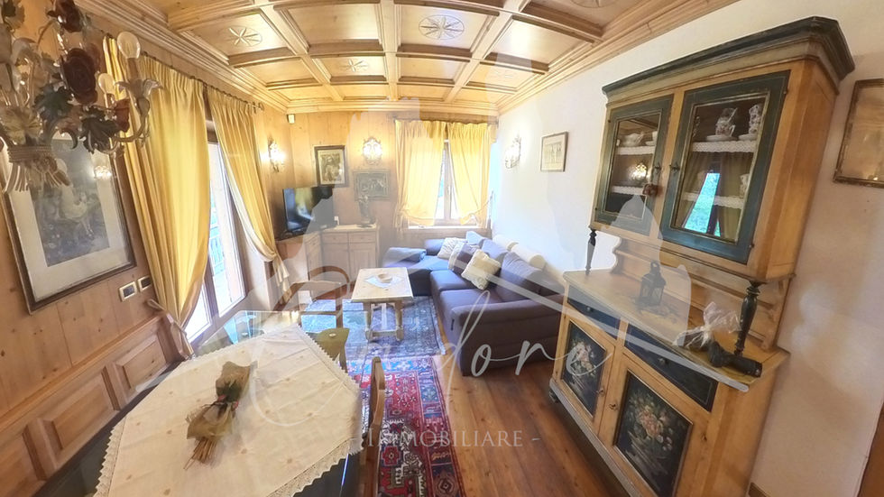 Nel centro di Padola proponiamo un appartamento di rara eleganza, caratterizzato da ambienti ampi, luminosi e rifiniti interamente in legno massello lavorato artigianalmente, come mostrano le splendide boiserie, i soffitti cassettonati e gli arredi su misura.